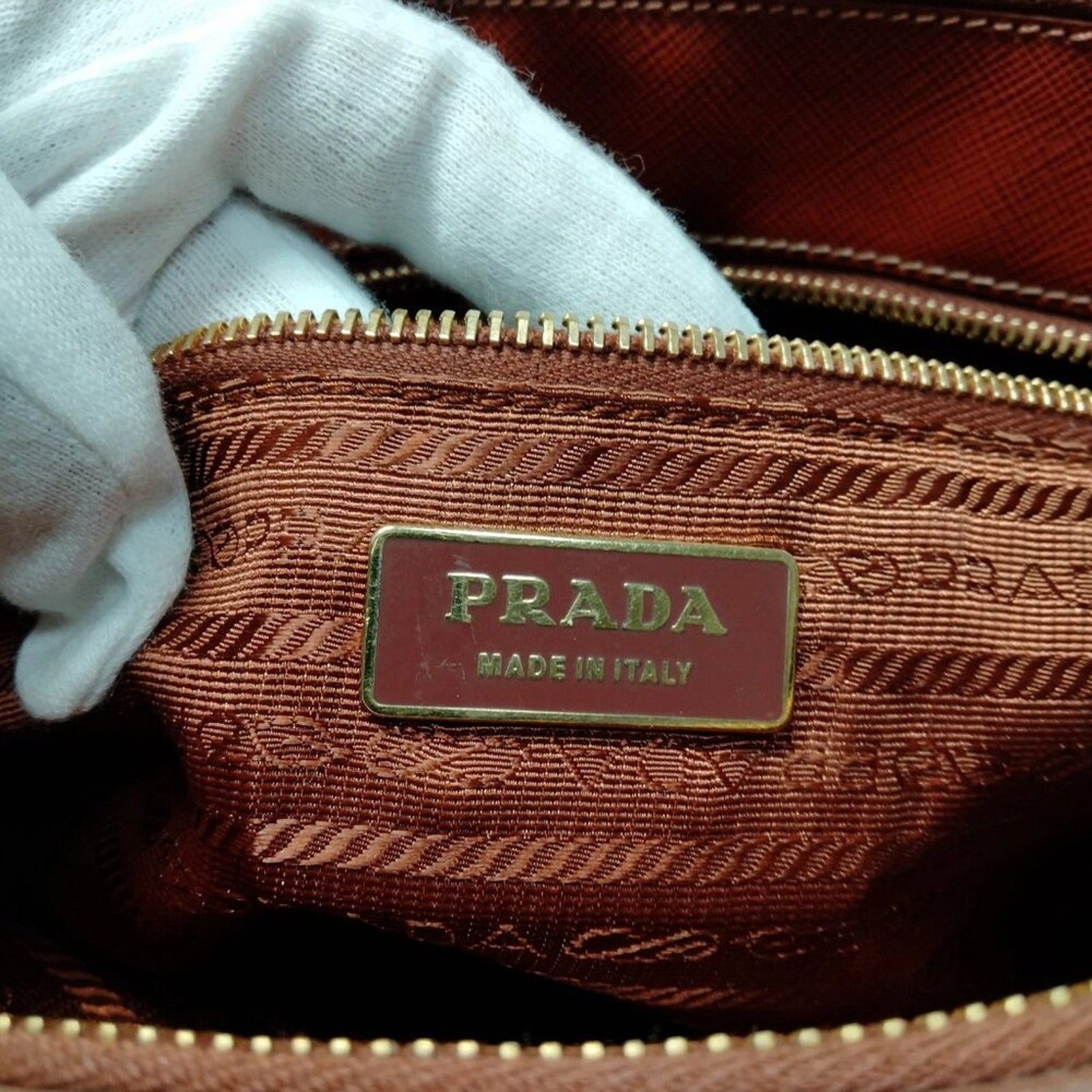 Prada Brown Leather Hand Bag lux351-092525